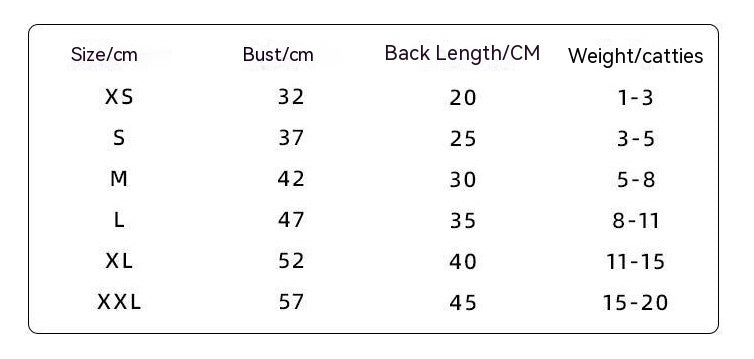 Size: XS (recommend weight 0.50 kilograms-1.50 kilograms, S (recommend weight 1.50 kilograms-2.50 kilograms, M (recommend weight 2.50 kilograms-4.00 kilograms, L (recommend weight 4.00kg-5.50kg, XL (recommend weight 5.50kg-7.50kg